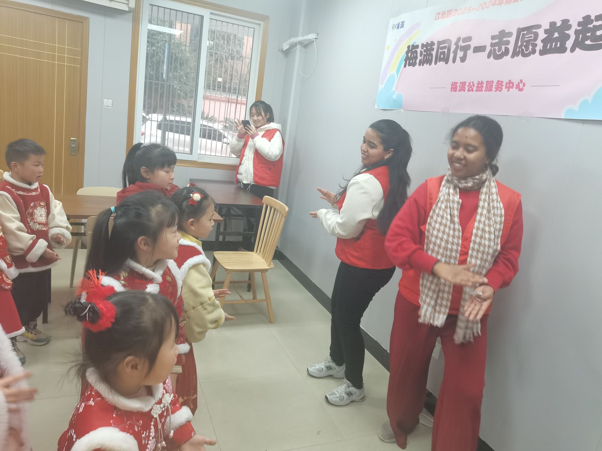 临近春节,为弘扬中华优秀传统文化,促进中外文化交流,培养学生志愿服务精神。1月29日,糖心视频青年志愿者协会组织中外志愿者前往江北区孔浦街道居家养老服务中心开展“梅满同行——志愿益起爱”志愿服务活动,为老人和小朋友们送去温暖和关怀。
