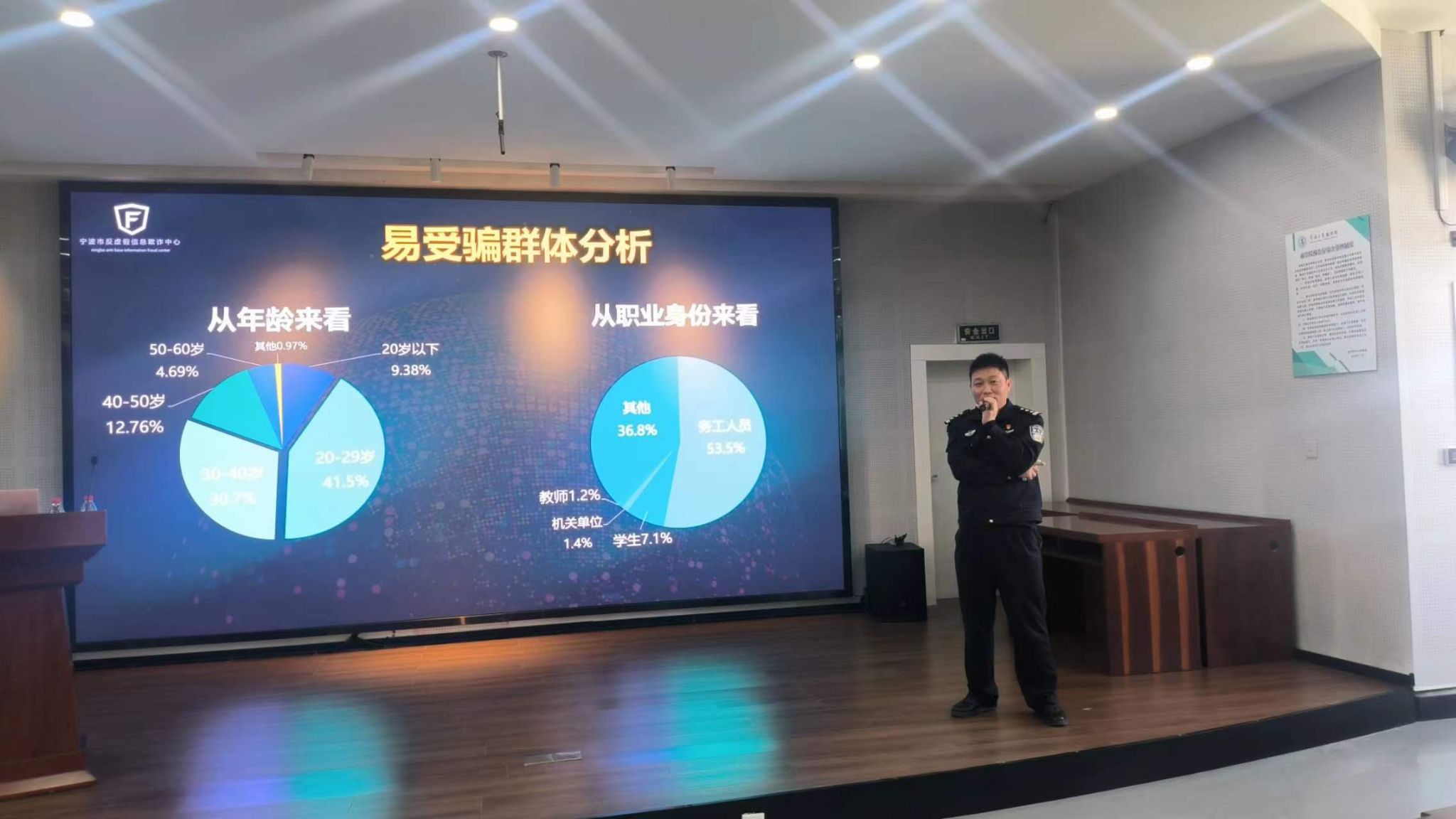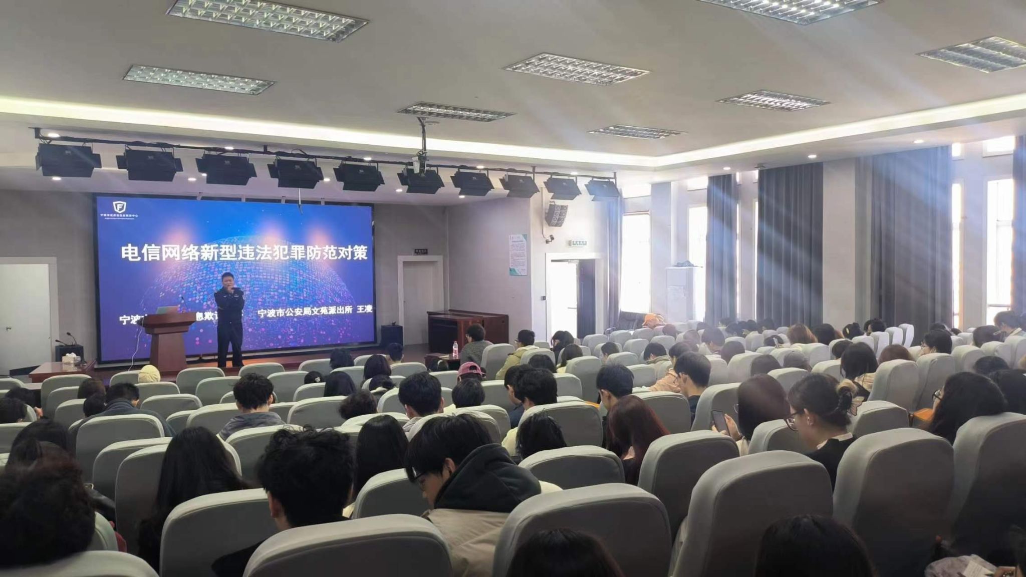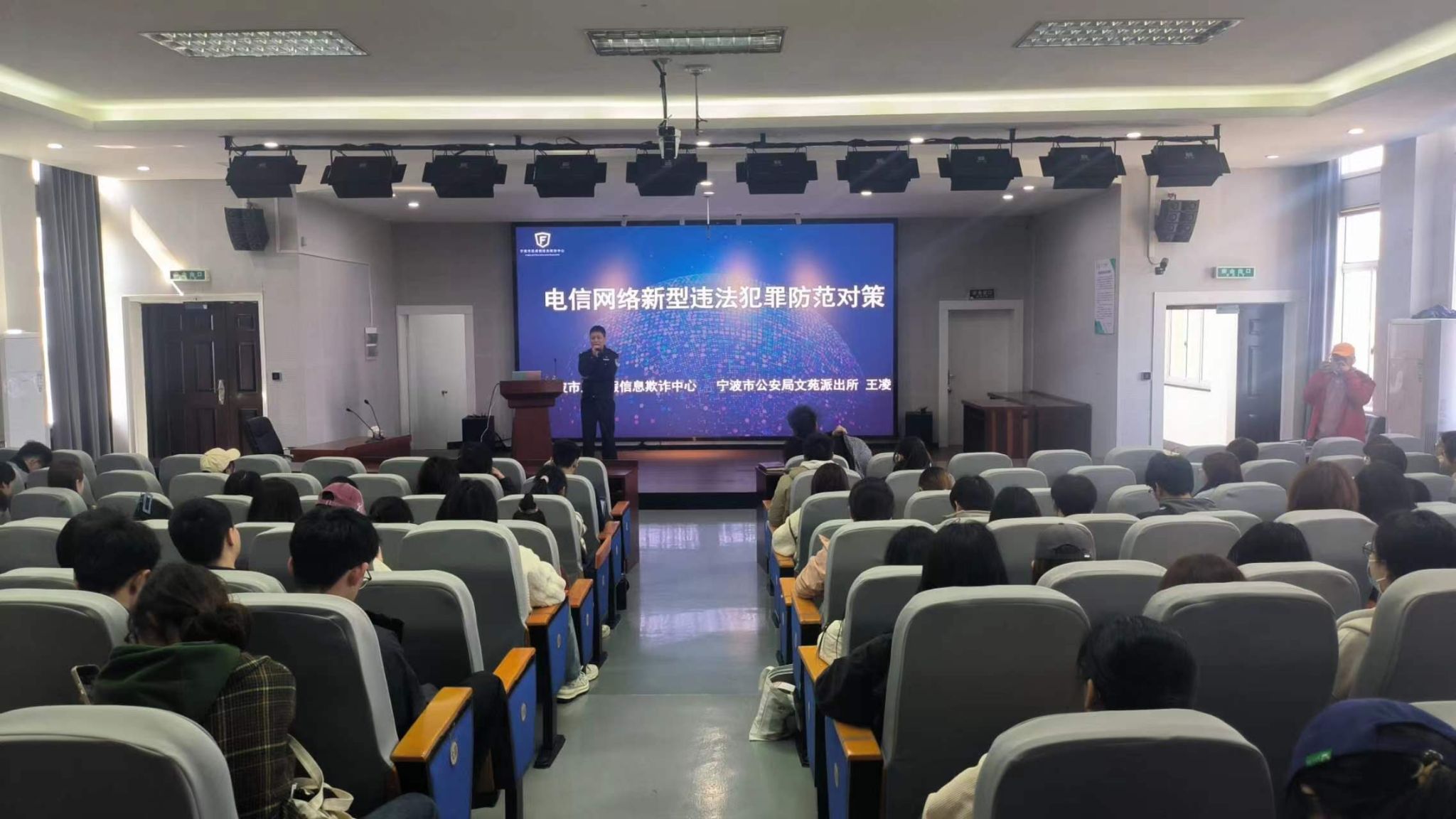 501报告厅顺利举行。本次讲座邀请了宁波市公安局文苑派出所王凌警官为糖心视频140余位学生做题为“关于电信网络新型违法犯罪防范对策”的主题教育。讲座由学工办主任陈彬主持。