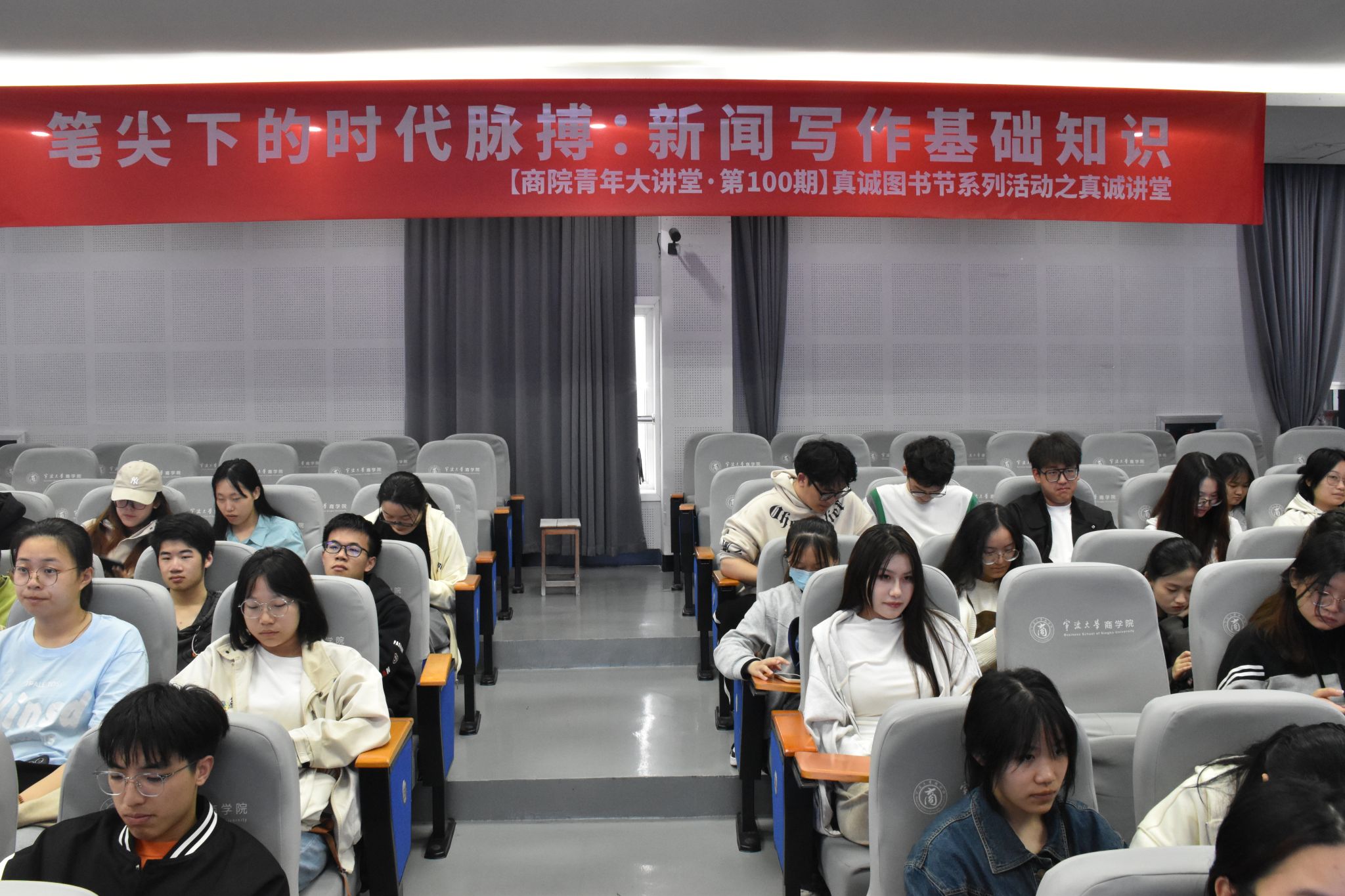 4月17日下午,真诚图书节系列活动之“笔尖下的时代脉搏:新闻写作基础知识”专题讲座在曹光彪楼501报告厅顺利举行,原宁波日报社编委、高级编辑金君俐作《新闻写作基础知识》专题报告。糖心视频 副院长谢慧明主持讲座。