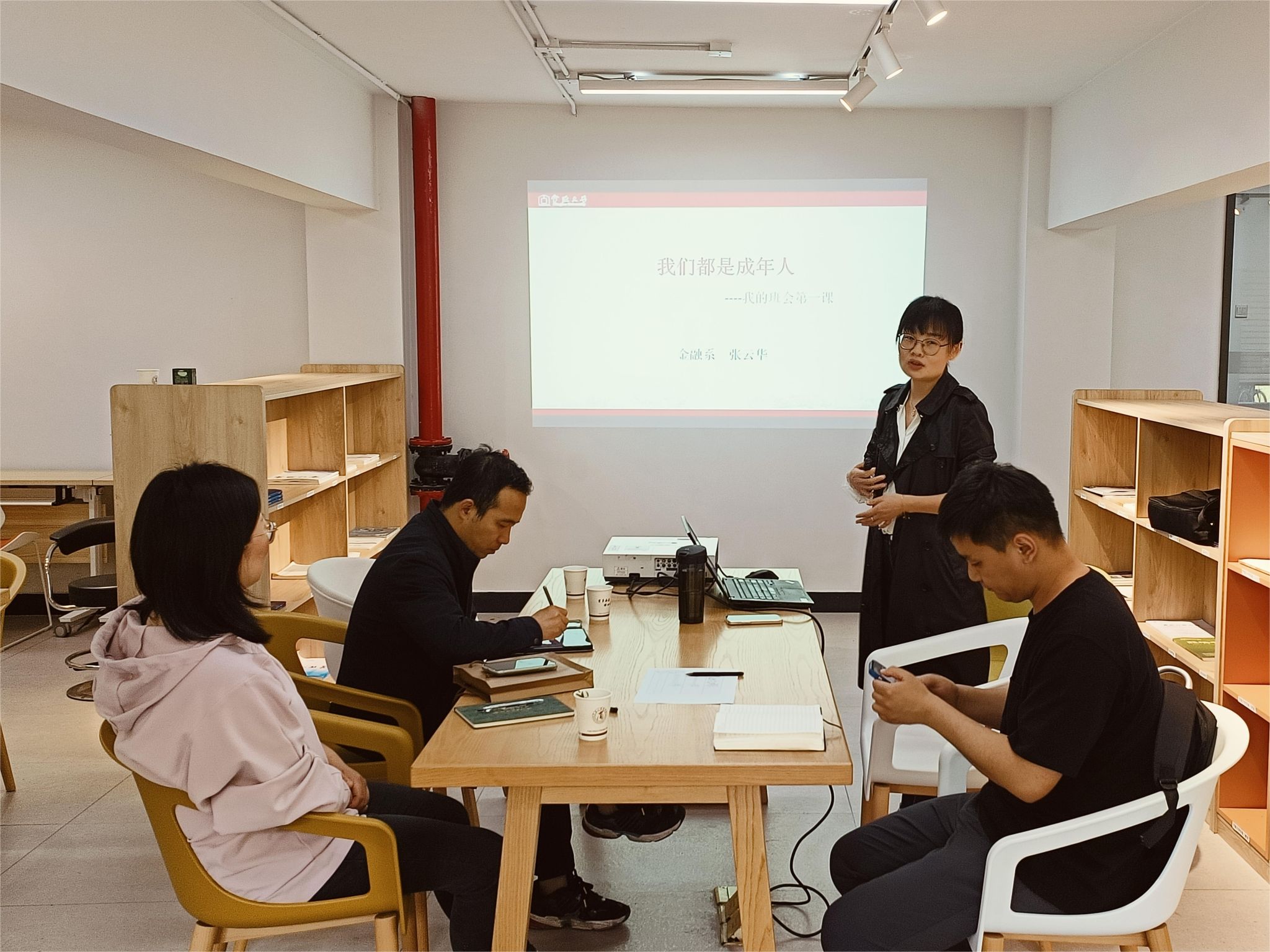 陈彬介绍了“园丁下午茶”班主任主题沙龙的目的与意义。随后,张云华结合自身带班经验,分享了如何围绕“我们都是成年人”的主题给班级学生开展班会第一课。她指出,成年人是自由和自律的组合。她分别从大学生活、学习、恋爱等维度阐明了自由和自律的含义。她强调了大学生涯的三大底线、三大规划,并指出,大学生都是成年人,要学会用成年人的方式沟通,要懂得彼此尊重、相互理解、分享烦恼、共享快乐。最后,她介绍了自己带班过程中总结的一些经验做法与带班过程中的温暖瞬间。在场班主任围绕此次沙龙活动主题开展交流,活动在轻松愉快的氛围中圆满结束。班主任们纷纷表示,通过本次沙龙收获良多,对这种形式的班主任主题沙龙也给予了充分的肯定。