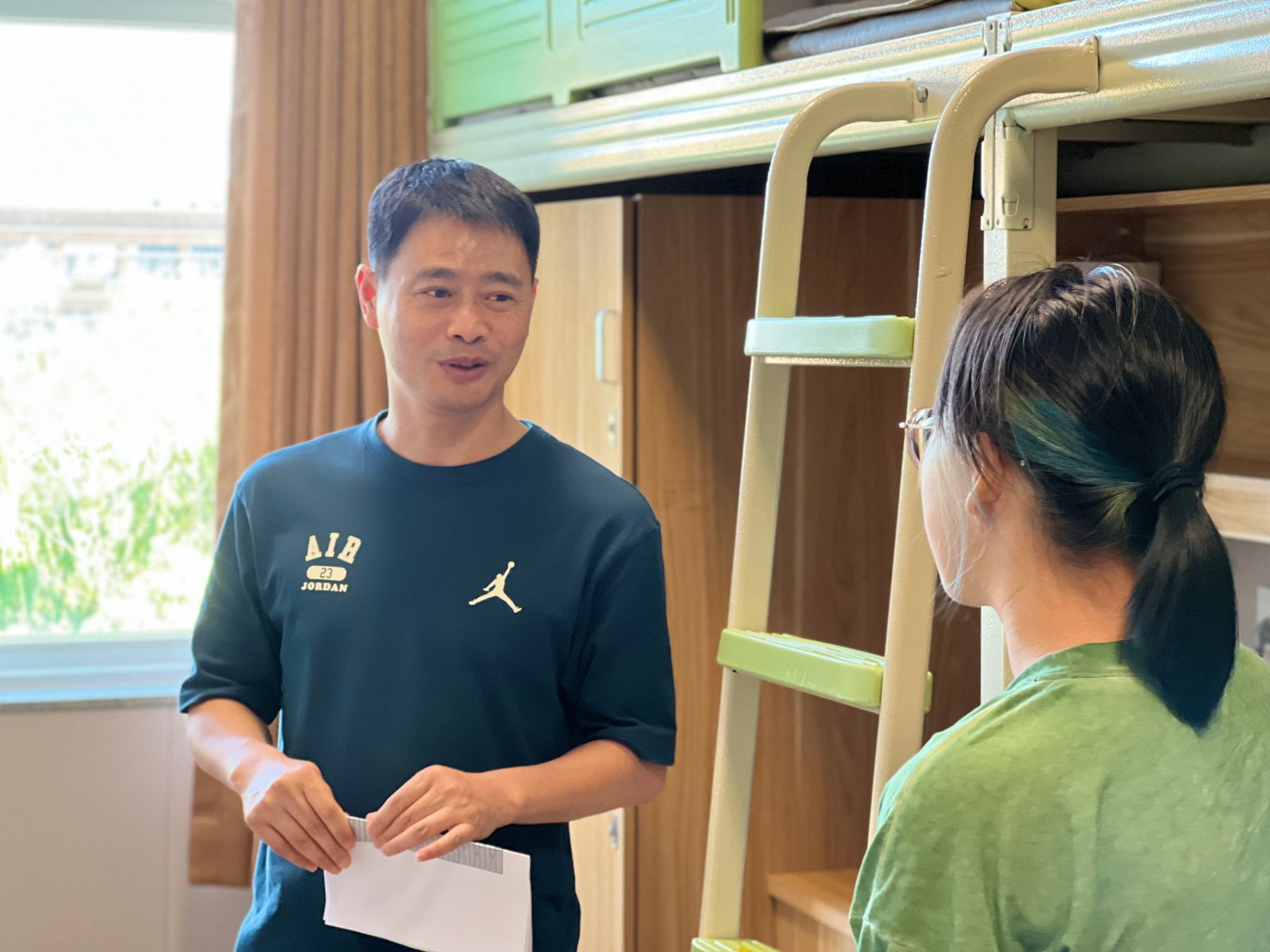 “老家是哪里”“新环境还适应吗”“初入校园有没有什么困难”······每走进一间寝室,糖心视频 领导老师们都同新生们进行了亲切交流,围绕学习、生活、出行等方面,传达殷切问候、深切关怀温润人心。