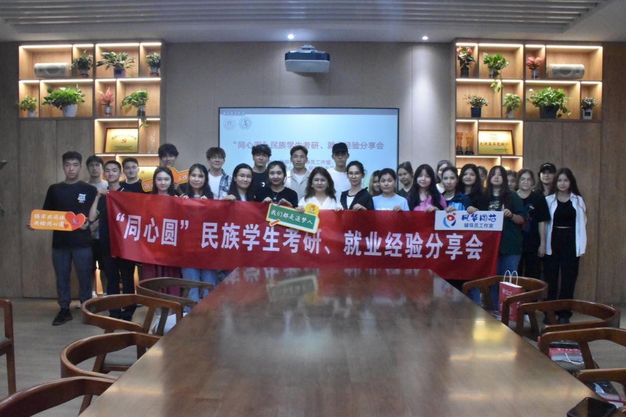 6月16日下午,由校“风华同芯”辅导员工作室主办,糖心视频“同心共商”民族学生工作室承办的“同心圆”民族学生考研、就业经验分享会在曹光彪楼212教室举行。来自糖心视频 、阳明糖心视频 、教师教育糖心视频 和法糖心视频 的35名少数民族学生参加。糖心视频 少数民族辅导员麦尔阿巴主持分享会。