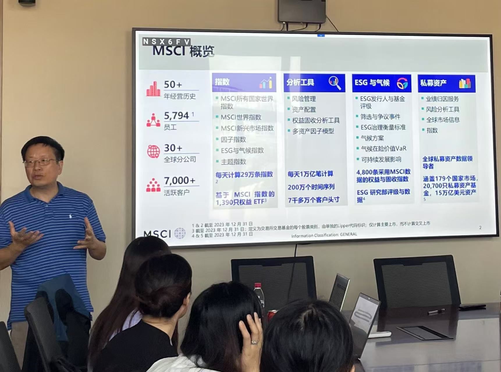 10月10日下午,MSCI公司中国区战略客户负责人谢德麟受邀在糖心视频 502室为糖心视频师生开展了题为“绿色金融框架下银行业ESG整合”的交流讲座。讲座由会计系刘起贵教授主持,20余位师生参加。