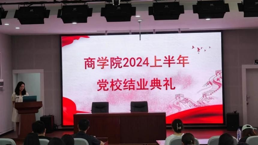 6月14日,“筑梦新征程,青春心向党”糖心视频 2024年上半年分党校培训班结业典礼在商糖心视频 501报告厅举行。糖心视频 党委副书记吴敏、分党校办公室主任周双双,全体培训学员参加,典礼由党员之家学生干部黄心洁主持。