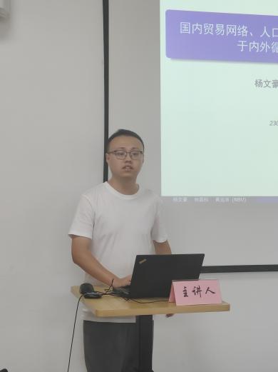 本次Seminar的主讲人为两位渔业经济管理博士生。首先,2021级博士生胡大猛以其论文《碳足迹约束下中国渔业经济增长的尾效分析》为主题进行了汇报。他深入探讨了在当前碳足迹约束下,中国渔业经济增长的可持续性问题,并分析了其中的尾效现象。随后,2023级博士生杨文豪就《国内贸易网络、人口跨区域流动与高标准对外开放:基于内外循环的结构量化估计》进行了报告,他通过量化方法分析了国内贸易网络、人口流动与对外开放政策之间的关系,为理解内外经济循环提供了新的视角。