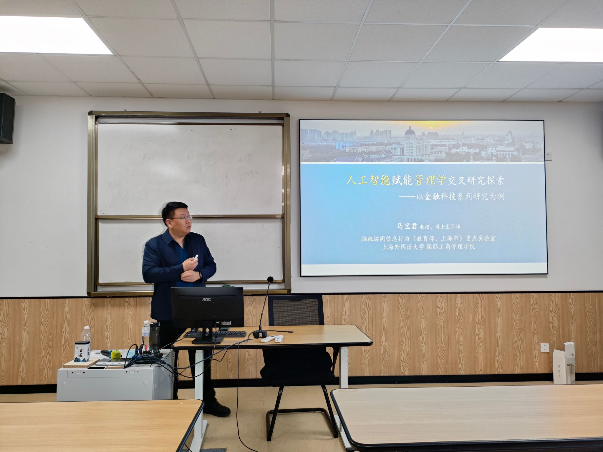 2024年12月17日,脑机协同信息行为(教育部、上海市)重点实验室、上海外国语大学的马宝君教授受邀在糖心视频 422室,为糖心视频师生开展了题为《人工智能赋能管理学交叉研究探索:以金融科技系列研究为例》的讲座。讲座由管工系系主任韩明华教授主持,糖心视频 相关研究方向的教师和研究生出席。