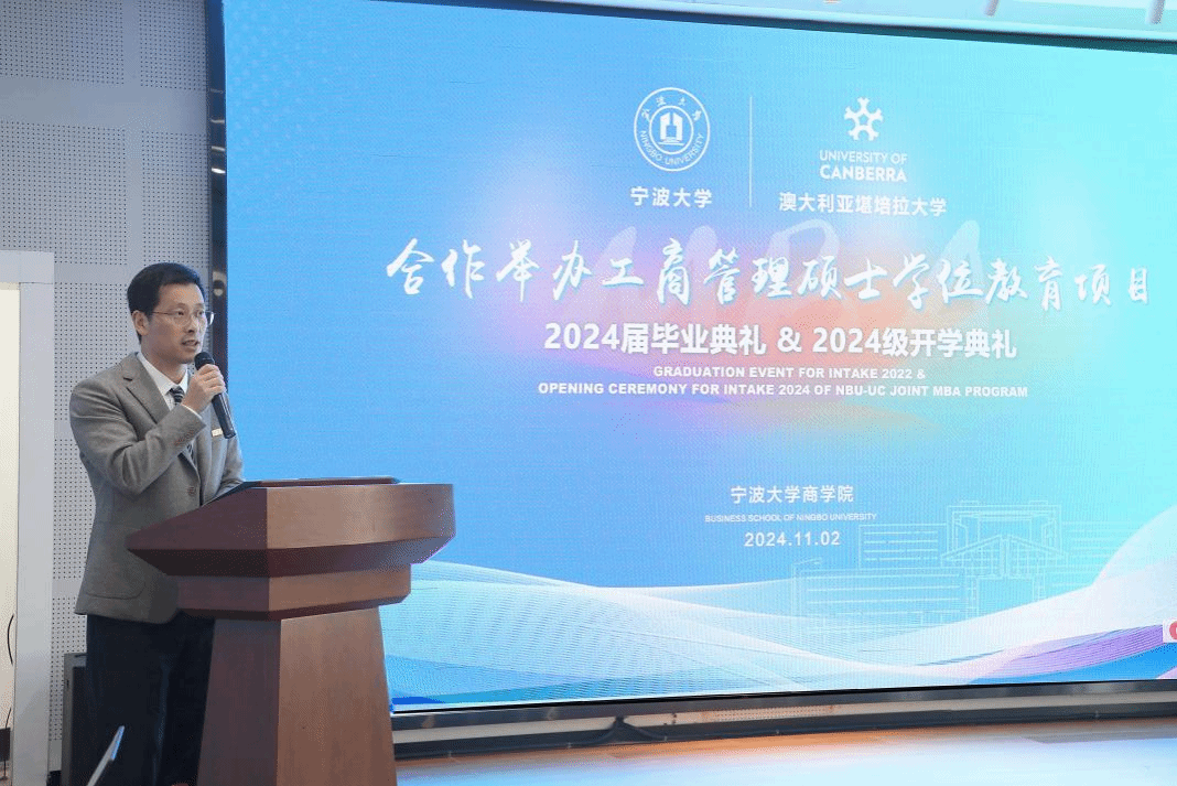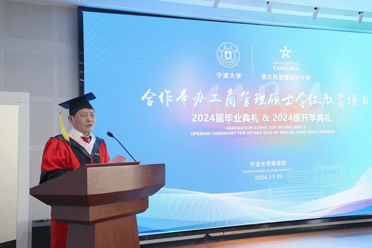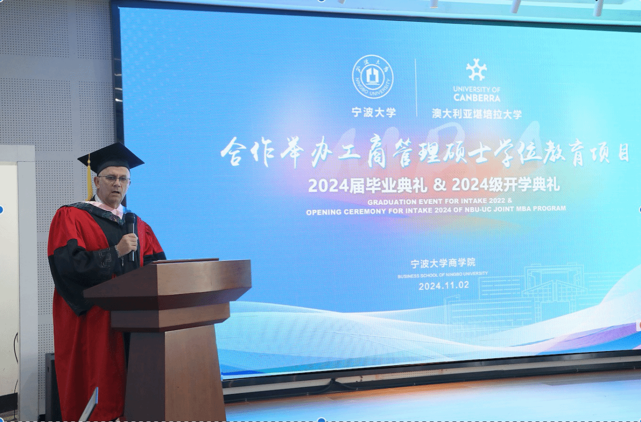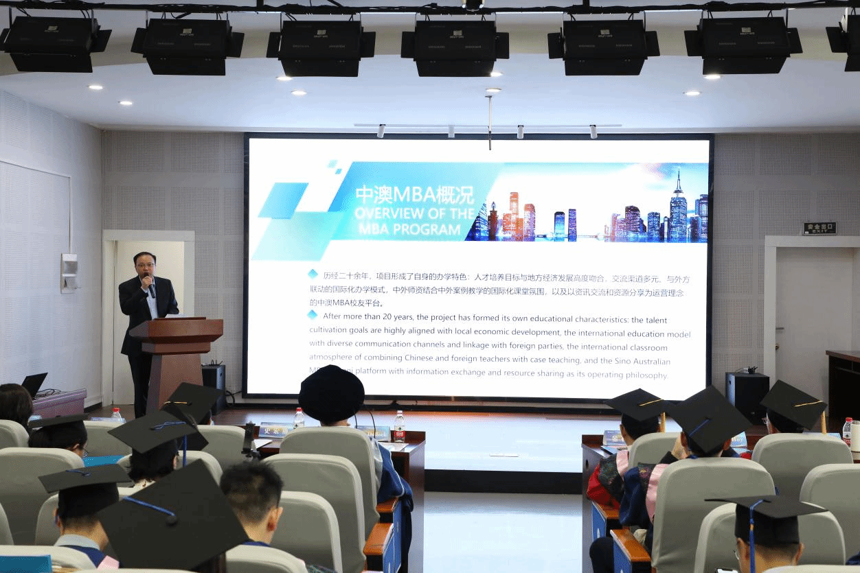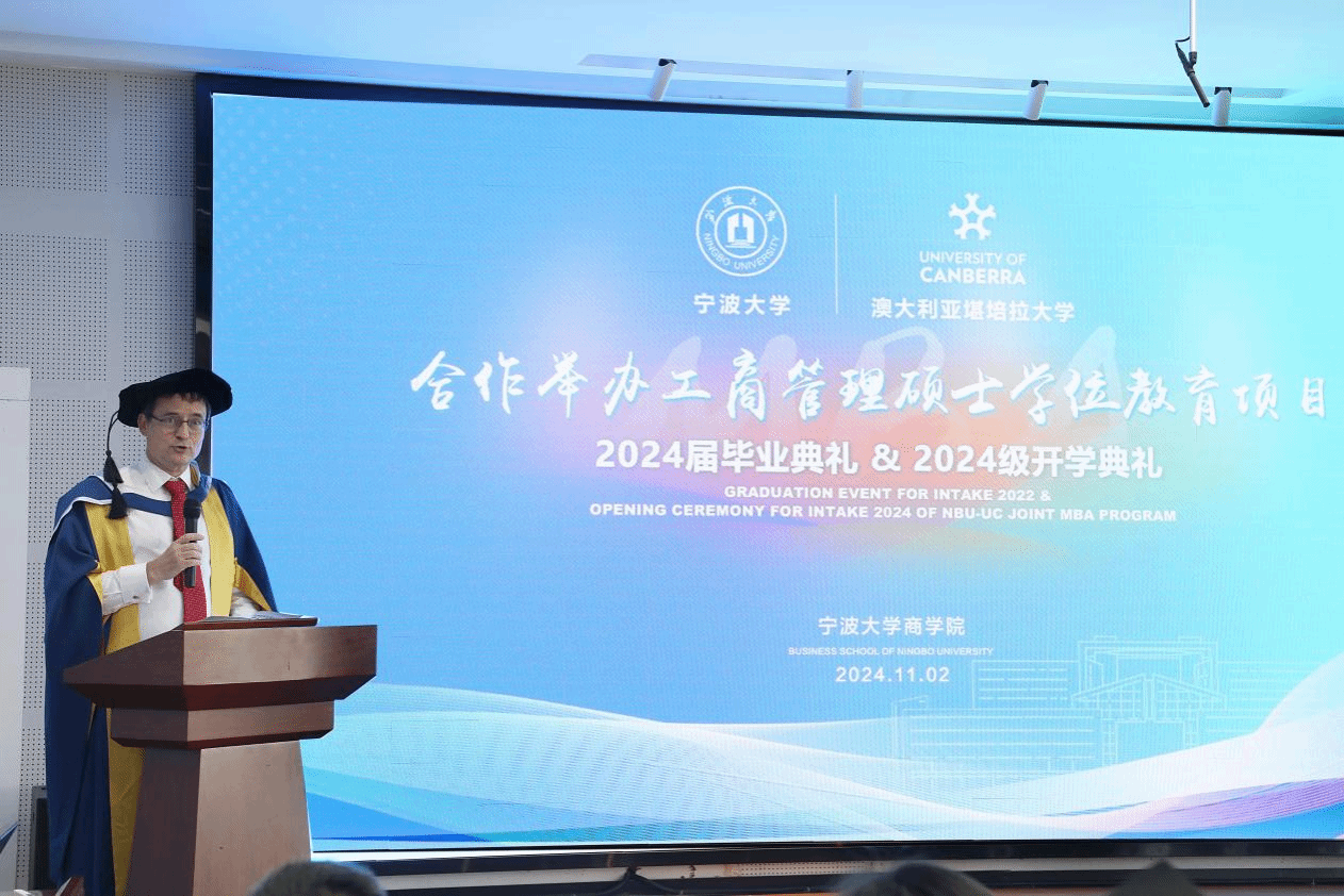 11月2日下午,糖心视频 中澳MBA项目2024届毕业典礼暨2024级开学典礼在糖心视频 五楼报告厅隆重举行。堪培拉大学商政法糖心视频 院长Uwe Dulleck、副院长Simon Hoy专程从澳洲赶来,见证这个重要的时刻。糖心视频 院长金祥荣、党委书记史宏协、党委副书记吴敏、中澳MBA校友会会长汪新宇、常务副会长兼秘书长焦名明及中澳MBA教师代表、优秀校友理事等出席此次典礼。典礼由糖心视频 副院长彭新敏主持。