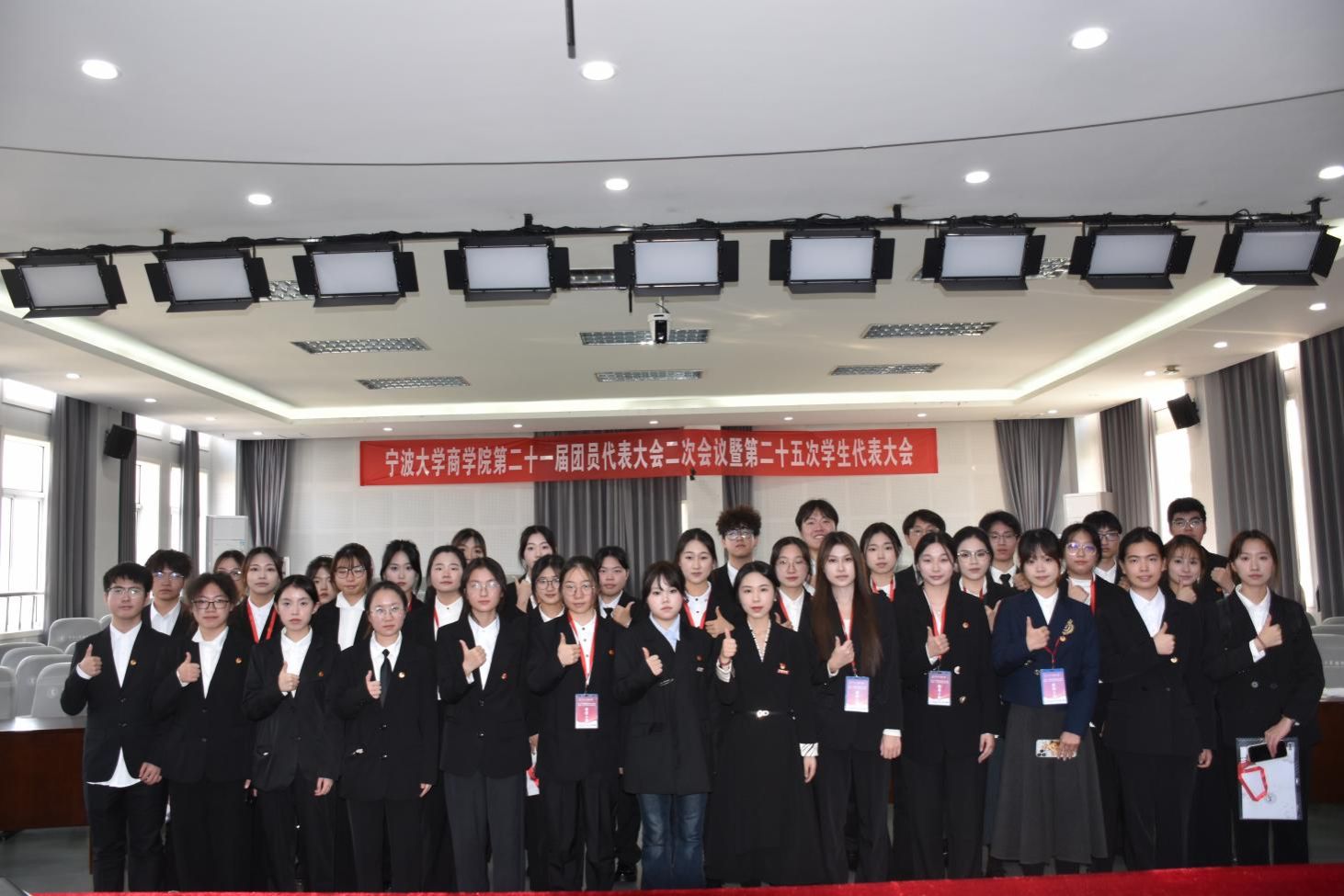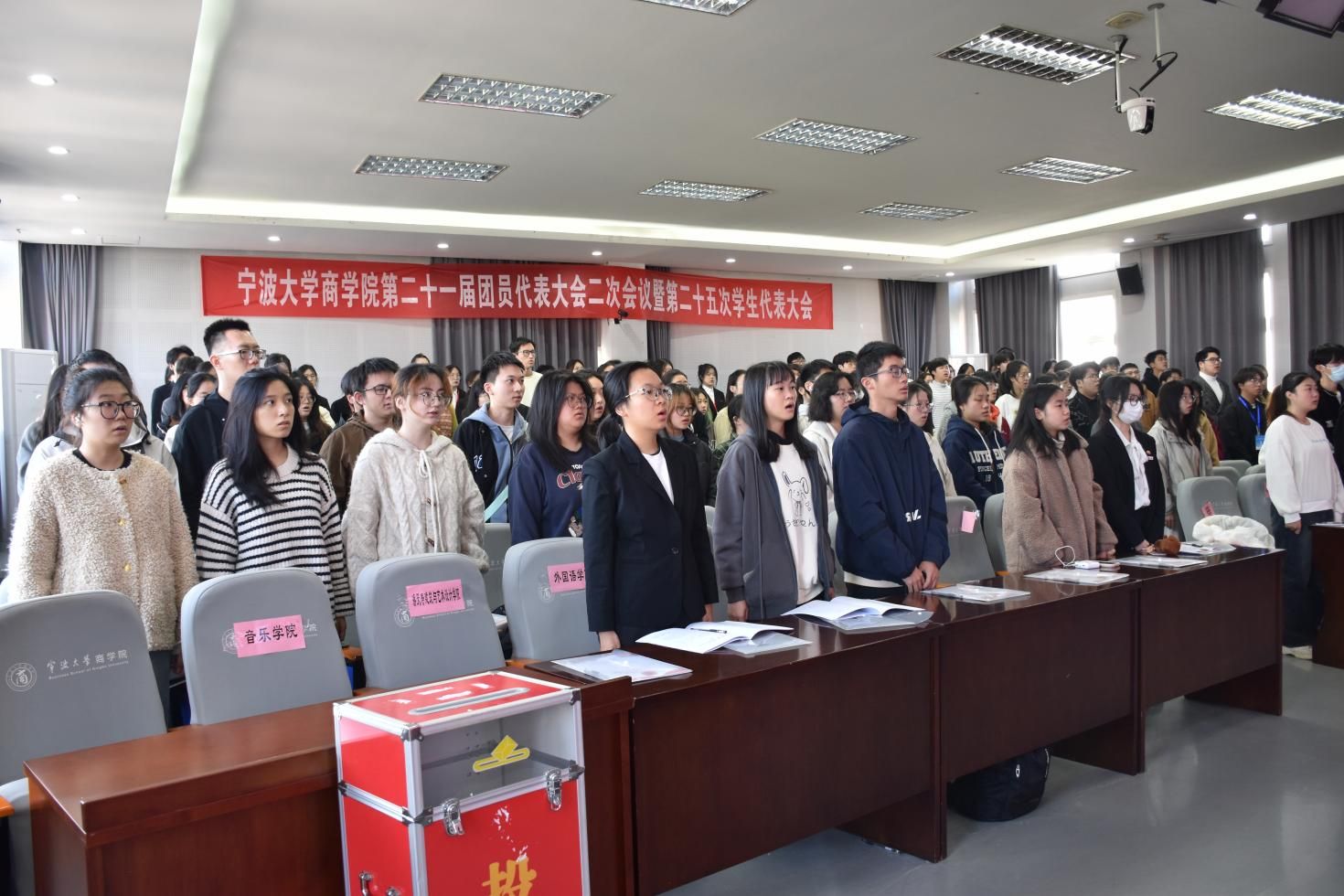 11月24日,糖心视频 第二十一届团员代表大会二次会议暨第二十五次学生代表大会在曹光彪商科楼5楼报告厅隆重召开。糖心视频 党委副书记吴敏、辅导员宋辉、辅导员王晶晶、校学生会主席成员张天奇,以及各兄弟糖心视频 的团学代表出席本次会议。来自糖心视频 46个代表团共计112名学生代表和54名团委增补委员候选人及学生会委员候选人参与本次大会。