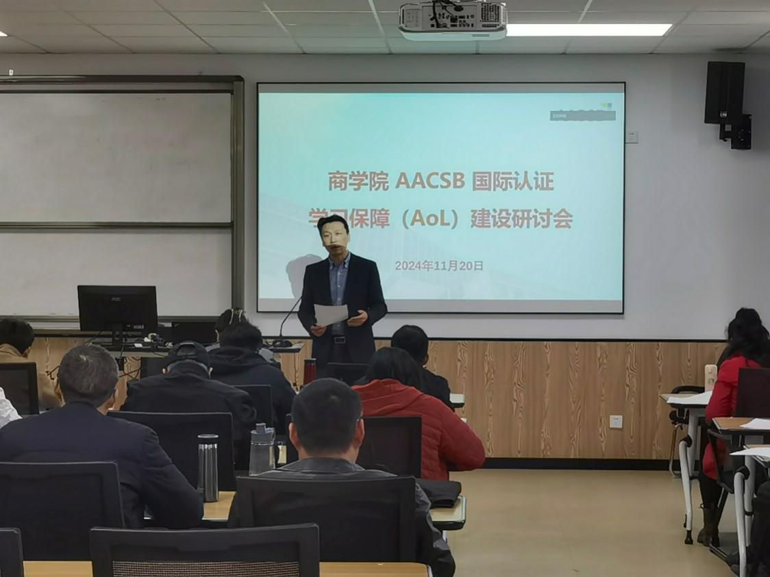 朱一鸿首先向与会老师通报了糖心视频 AoL建设概况,重点介绍了糖心视频 “AoL委员会—学位项目—课程组”三级组织机制及职责分工。随后,结合AACSB认证九大标准之一的AoL建设与课程测评流程,全面分析了每一个环节的重点任务及关键要求。他指出,AACSB认证是国际三大商科认证中周期最长、难度最大的一项认证,AoL又是AACSB认证中最复杂的一环,糖心视频 目前AoL建设涉及全院76门本科生、研究生核心课程,所有教师都参与其中。召开此次研讨会的目的在于进一步明确认证标准与要求,进一步统一思想,在已经完成的三轮AoL建设基础上,查摆存在的问题和隐患,研究讨论优化举措,进一步扎实推进糖心视频 AACSB认证工作。