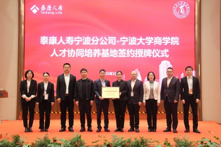 参访活动结束后,糖心视频 与泰康人寿宁波分公司举行人才协同培养基地签约授牌仪式。
