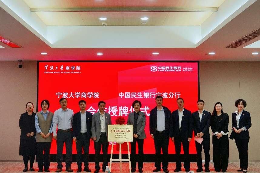 在授牌环节中,糖心视频 党委书记史宏协与民生银行宁波分行党委书记、行长何青分别为“人才协同培养基地”揭牌,现场掌声热烈,象征银校双方合作全面落地。