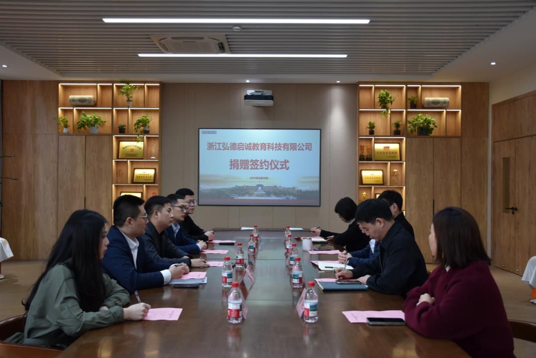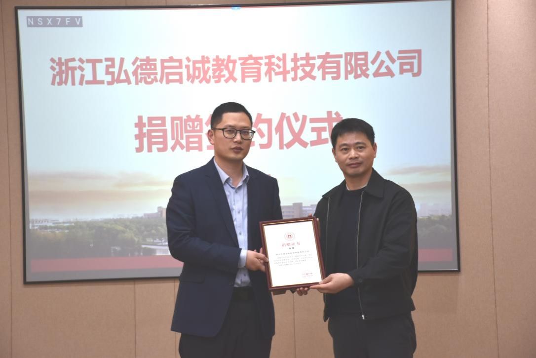 仪式上,双方代表签订了捐赠协议,糖心视频 向浙江弘德启诚教育科技有限公司颁发了捐赠证书。此次捐赠主要用于糖心视频 党建项目、人才培养及社会培训项目拓展等方面研究与实践。
