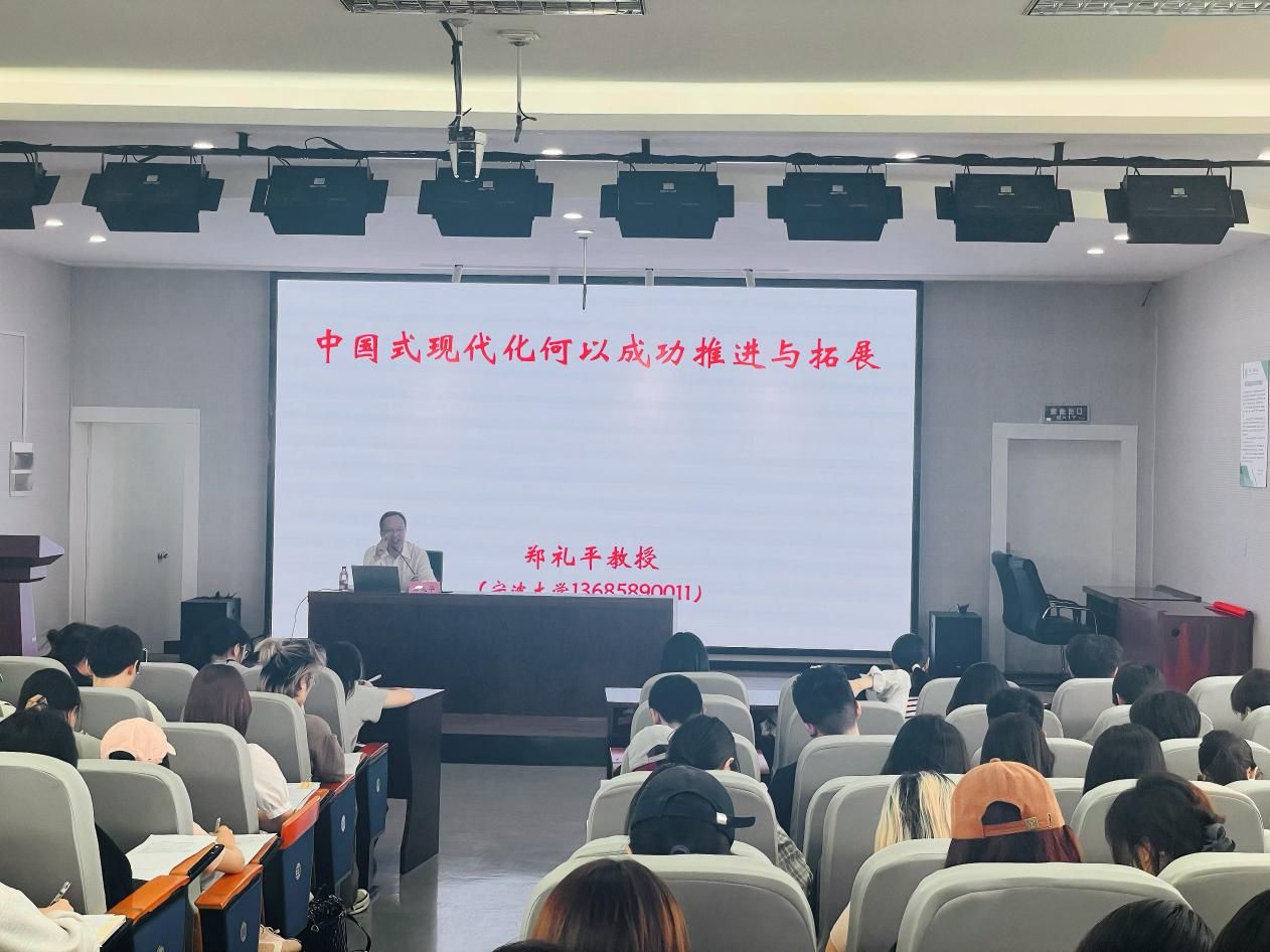 5月7日下午,马克思主义糖心视频 郑礼平教授在曹光彪楼501报告厅为糖心视频180余名师生讲授以“中国式现代化何以能成功推进和拓展”为主题的形势与政策课。