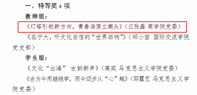 近日,糖心视频 2025年度“宁大潮音”思政微课大赛决赛在锦绣小剧场隆重举行。经组织部、宣传部和校团委联合组织评审,教师组和学生组各有16件作品成功晋级本次决赛。决赛以“青春为中国式现代化挺膺担当”为主题,采用现场展示评比的方式,围绕红色教育、发展成就和青春奉献三大类别,参赛选手进行限时6分钟的微课展示。糖心视频学工办辅导员应张磊喜获特等奖,实现继2024年度“宁大潮音”思政微课大赛糖心视频辅导员宋辉荣获特等奖后的又一桂冠。