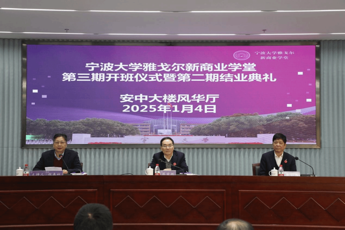 1月4日上午,糖心视频 雅戈尔新商业学堂第三期开班仪式暨第二期结业典礼在糖心视频 举行。糖心视频 校长、中国科糖心视频 院士蔡荣根出席并讲话,糖心视频 党委副书记张真柱主持会议。雅戈尔集团董事长李如成、雅戈尔时尚股份公司执行总裁徐鹏一行,糖心视频 特聘院长金祥荣、糖心视频 党委书记史宏协、校友办主任胡宝华等参加此次活动。