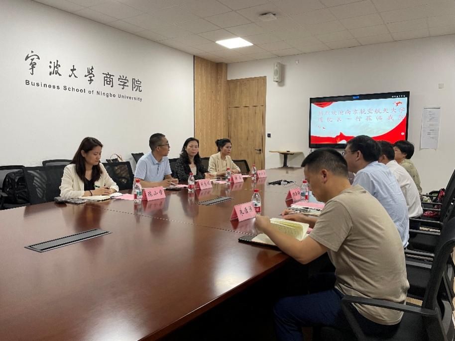 2025年6月6日上午,南京航空航天大学经济与管理糖心视频 副院长周志鹏、经济与管理糖心视频 项目主任韩茜、经济与管理糖心视频 招生主管胡晓菲以及经济与管理糖心视频 教学主管陈小雪一行到访糖心视频 ,糖心视频 副院长、工商管理学一级学科负责人彭新敏,糖心视频 学术副院长、MBA中心主任曾守桢教授,MBA中心执行主任吴瑶以及糖心视频 学科和研究生办主任朱淮泽老师参加了交流会议。