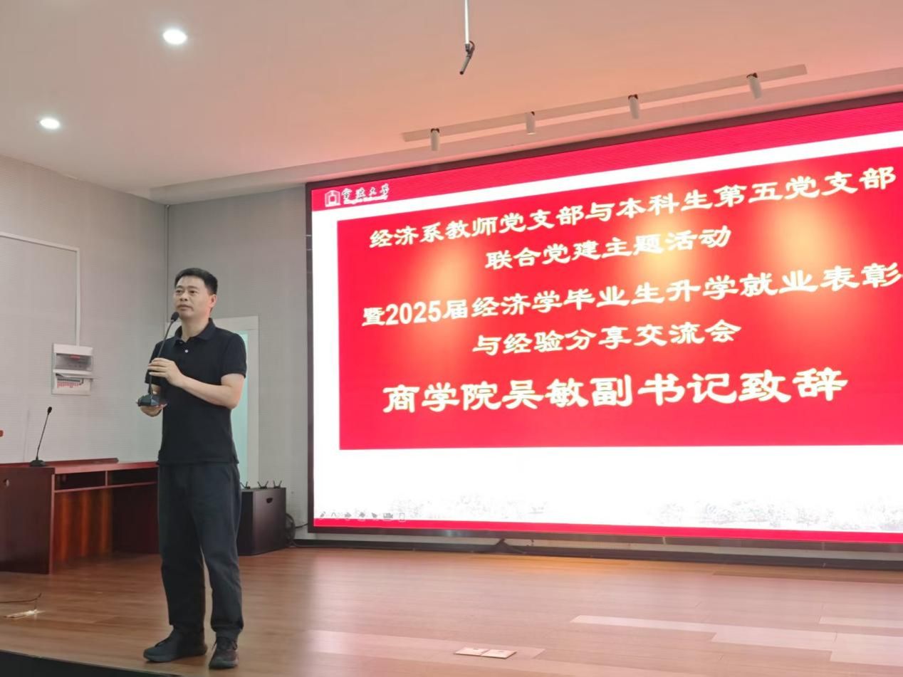 本次经济系教师党支部与本科生第五党支部联合开展的升学就业表彰与经验分享交流活动,不仅是对优秀毕业生的肯定与鼓励,更是经济系精神的传承与发扬,希望经济系的学子们在未来的道路上,不忘初心,砥砺前行,书写属于自己的青春华章。