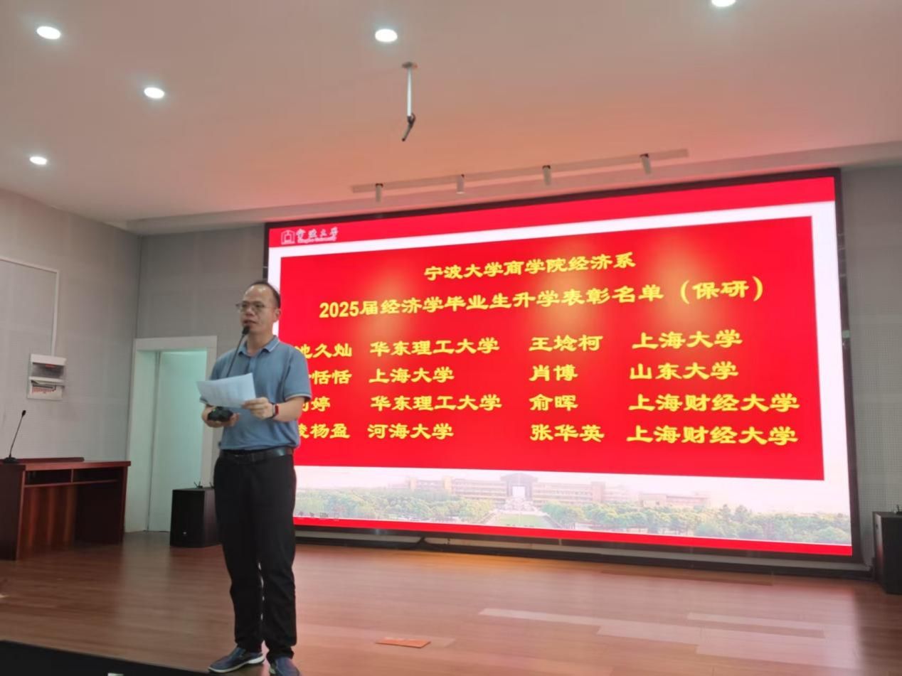 随后,经济系教师党支部副书记、教学系主任闭明雄宣读了表彰名单,对在升学、考公考编就业以及获得校级、省级优秀毕业生荣誉的同学进行了表彰,吴敏和徐群芳共同为同学们颁奖并合影留念。