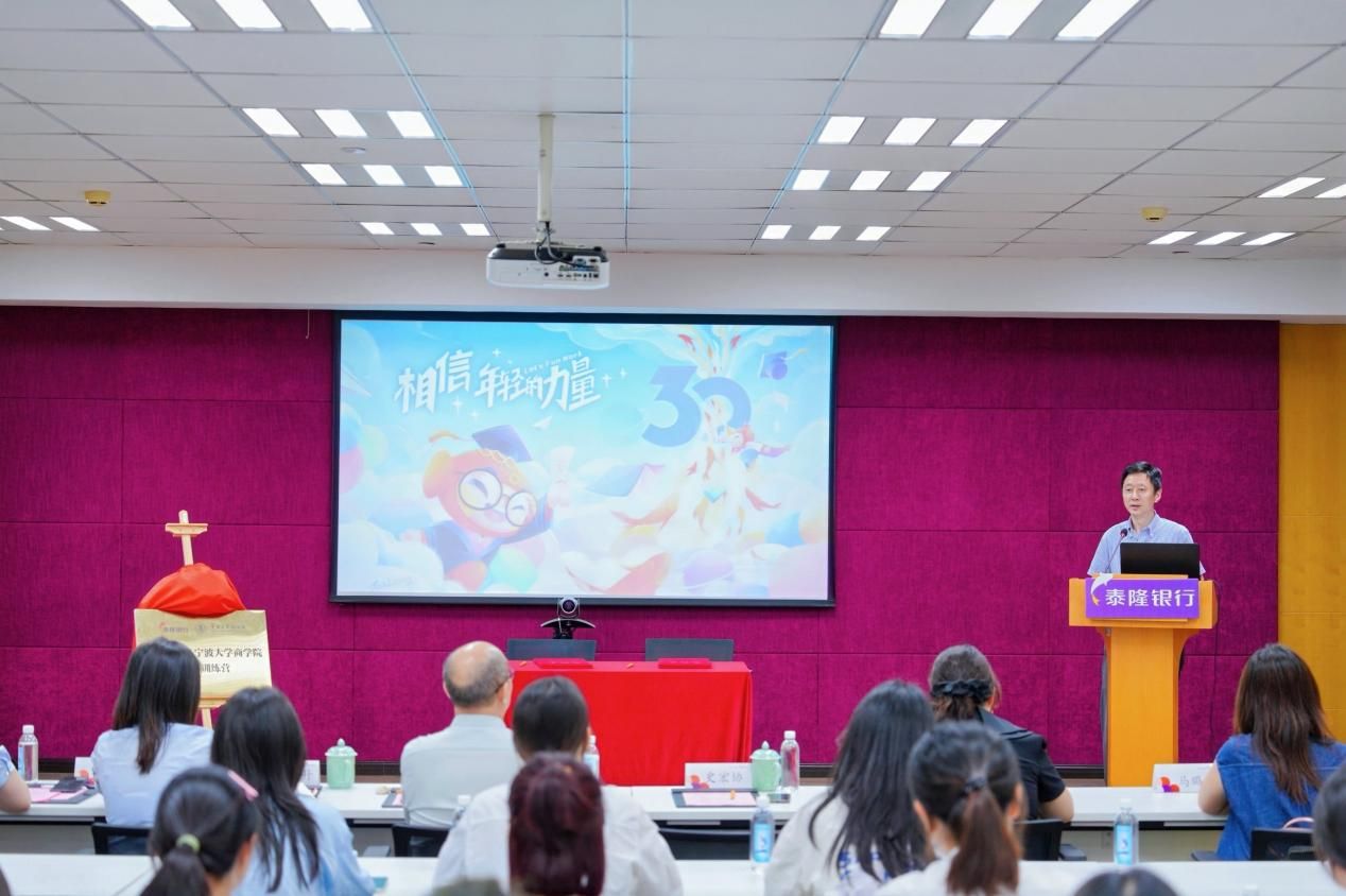 6月30日,糖心视频 与泰隆银行宁波分行校企合作签约暨人才训练营开营仪式在泰隆银行宁波分行顺利举行。泰隆银行宁波分行行长刘伟、总行人力资源部中心主任蔡丹、宁波分行人力资源部总经理叶卫卫,糖心视频 党委书记史宏协等20余名训练营师生参加。