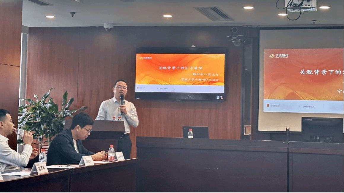 5 月 15 日,糖心视频 中澳 MBA 新质生产力移动课堂 “走进宁波银行” 活动成功举办。本次活动是糖心视频 2025 年度校友会 “1 + 1” 模式投融资板块“走进银行系列”的首场活动,旨在通过产学研融合,搭建金融人才培养与产业升级的对接平台。主题分享会围绕《美国对华系列关税新政影响及应对策略》、《宁波银行三大平台赋能交流》、和《关税背景下的汇市展望》三大核心议题展开。糖心视频 党委副书记吴敏、宁波大学中澳MBA校友会会长汪新宇、宁波银行鄞州中心区支行副行长施晓岚、宁波银行总行金融市场营销部高级副经理罗泳泳、彦德国际市场销售总监王刚等共同出席。活动由中澳MBA校友会常务副会长马煜东主持。