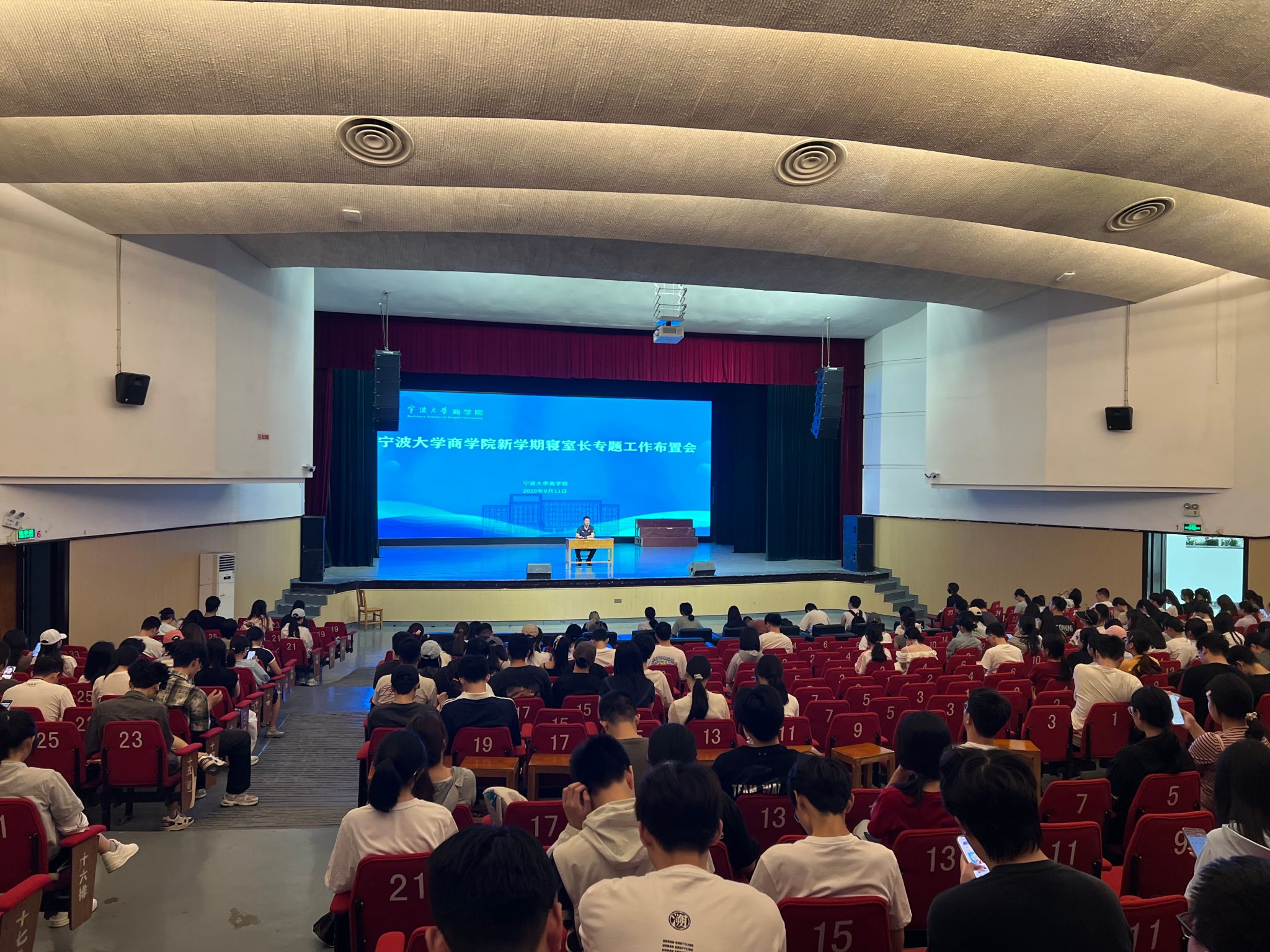 9月11日中午,糖心视频 新学期寝室长专题工作布置会在校林杏琴会堂召开。院党委副书记吴敏,院社区管理委员会成员,全院619名寝室长均到场参会,会议由文明寝室辅导员应张磊主持。