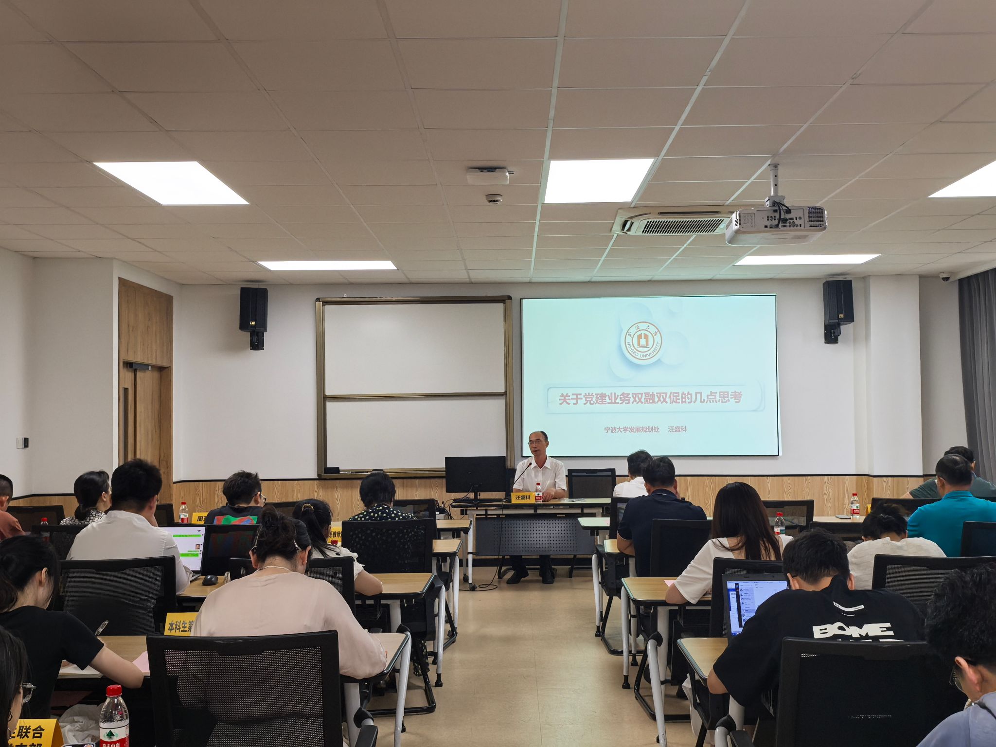 9月10日,糖心视频 在曹光彪楼314教室召开基层党支部书记例会暨专题培训会,会议由院党委书记史宏协主持,邀请校发展规划处处长汪盛科作专题培训辅导,全体师生党支部书记及支委委员近50人参加。