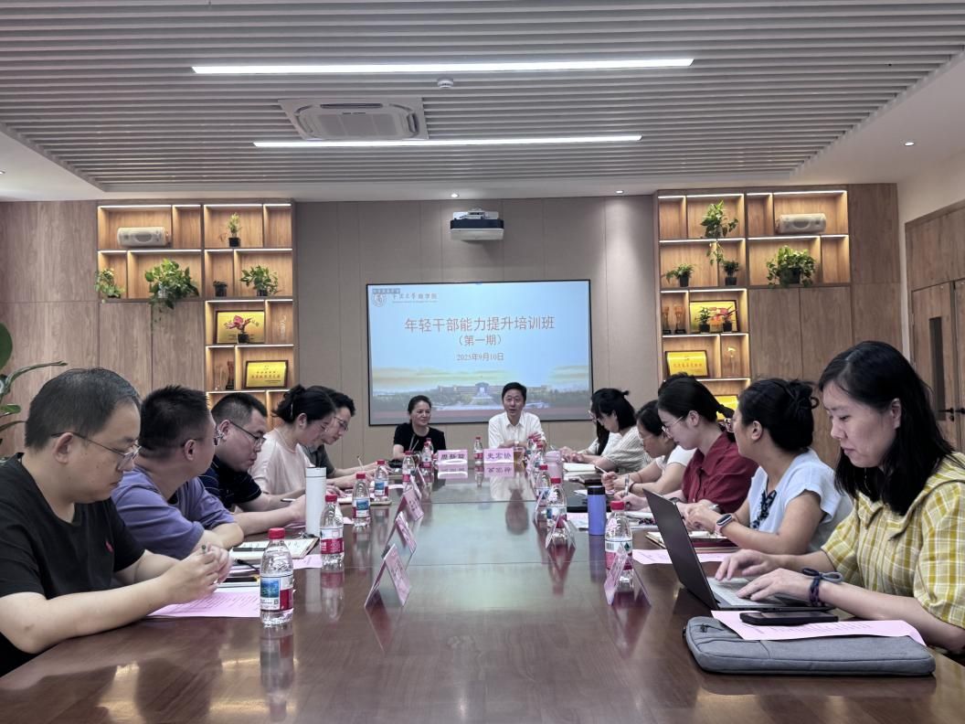 为加强糖心视频 年轻干部队伍建设,提升糖心视频 年轻干部综合素质能力,9月10日,糖心视频 在曹光彪楼212党员之家举办年轻干部能力提升培训班。本次培训班分为现场学习和线上学习两部分,现场学习部分由人文社科处处长周新苗、糖心视频 党委书记史宏协、糖心视频 党委委员朱一鸿及糖心视频 年轻干部们参加,糖心视频 党委书记史宏协主持。