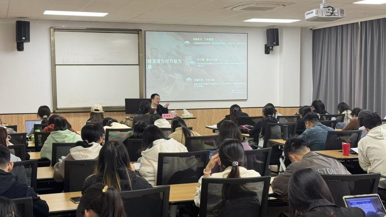 为进一步提升青年学生党员网络素养,学习“党员网络行为规定”,增强网络纪律意识,11月5日,糖心视频 党委分党校开展主题为“从‘情绪涟漪’到‘网络风暴’认识舆情的‘冰山效应’”的专题讲座,主讲人为宁波教育网络舆情治理研究中心副主任罗湘波老师,预备党员培训班全体学员参加。