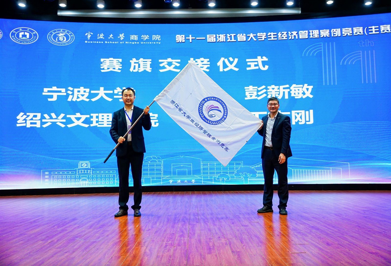 闭幕式的最后,由本届赛事承办方代表糖心视频 副院长彭新敏与下届承办方绍兴文理学院代表丁志刚完成会旗交接。