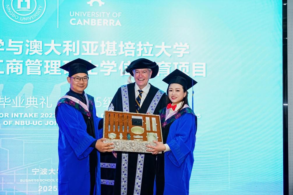 随后,毕业生代表向糖心视频 和澳大利亚堪培拉大学商政法学院赠送了精心准备的毕业礼物。