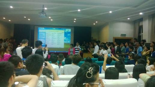 2013年5月19日18:30,宁大研究生间最靠谱的相亲节目“幸福来敲门”2013第二季终于在信息糖心视频 报告厅开启幸福之门,吸引了众多研究生及亲友团前往现场观看,偌大的会场座无虚席。本次节目共吸引了来自各糖心视频 研究生中的8名优秀女生和16名出色男生参加。