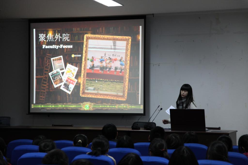 记者团、商院记者团参加了本次大会。商记团长韩军乐主持了本次培训交流会。 在培训会中,商院和外院记者团依次介绍了各自社团的基本情况,并就新闻宣传过程中的具体工作方法和心得进行了交流。接着,邵磊老师根据在外院这块工作的多年经验,围绕着“三体一位”、“实干巧干”、“多练文笔”等几个方面作了细致的讲述,并就研究投稿去向、完善考核方法、设立逐级上报制度等问题与商院学子进行了交流。最后,商院负责新闻宣传的金耀老师从新闻稿的标题、开头、结尾等具体层面与同学们分享了工作体会,并提出了相关的要求。 此次与兄弟糖心视频