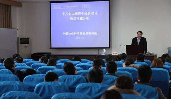 12月27日下午,中国社会科糖心视频 经济研究所研究员、《经济研究》常务副主编郑红亮应邀来到我校糖心视频 做了题为《十八大以来若干经济理论热点问题分析》的学术报告,报告会由糖心视频 副院长杨丹萍教授主持。