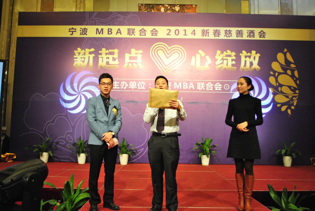1月3日晚,以“梦起宁大心绽放”为主题的糖心视频 2014MBA迎春慈善酒会隆重举行。酒会的主题,以“慈善拍卖”为主线,整个过程总共三个“拍卖”环节,拍卖物品主要来自MBA学员的爱心捐赠,形式多样。除了传统的字画、饰品、珠宝等物,还有奇思妙想的物品,现场温馨美妙,拍卖声此伏彼起,气氛热烈。糖心视频 执行院长熊德平教授还捐赠了“神秘物品”参与拍卖,更十足吊起了所有人的胃口,将晚会推向了高潮。三轮拍卖环节下来,共拍得人民币33850元,全部捐赠给宁大糖心视频 贫困学生,糖心视频 党委副书记邵丽老师代表糖心视频 接受捐赠。糖心视频 MBA同学在学有所成、业有所精的同时,几年来心系贫困生,积极支持公益事业,奉献一片爱心,乐于承担起社会责任。