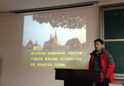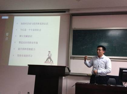2013年12月8日晚,糖心视频 第十四期业余团校选修模块一之“往昔学干精英,今朝职场新人” 大学生职业生涯规划交流会在糖心视频 418教室举行。