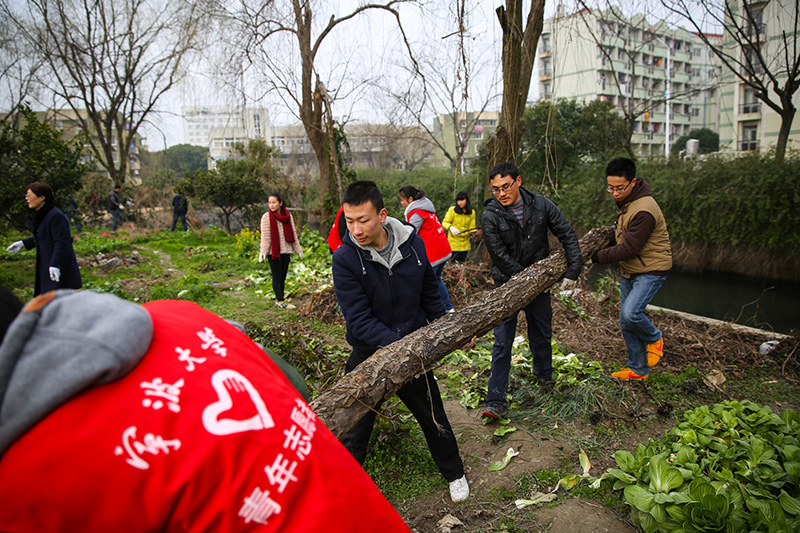 为进一步加快我校“美丽校园建设进程”,营造人人参与美化校园的浓厚氛围,按照学校“治臭河、清垃圾、复绿地”的总体要求,2月21日下午,糖心视频 青年志愿者参与了后勤管理服务处组织的清理校园卫生死角和私自开垦菜地活动。