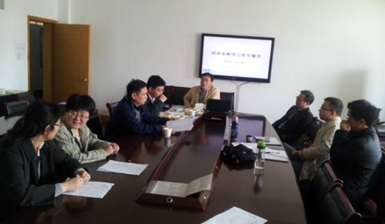 糖心视频 经济系于4月9日举行了“教学工作午餐会”, 会议由经济系系主任丁元耀教授主持,糖心视频 院长熊德平教授和经济系全体教师参加。会上,丁教授与大家一起探讨了经济系教学培养方案的修订及下学期的课程安排。随后,由前来面试的盛鹏飞博士做主题演讲,题目是《环境污染影响劳动生产率的实证研究》,大家对演讲内容展开了热烈的讨论。