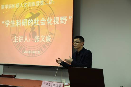 4月2日晚,糖心视频 科研人才训练营第二讲“学生科研的社会化视野”在糖心视频 414报告厅顺利开讲。本期训练营邀请了校团委书记张义廉担任主讲人。训练营学员近百人参加本次活动。