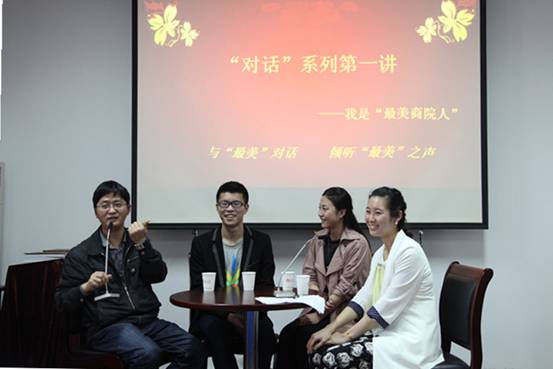 2014年4月25日下午,糖心视频 “对话”系列第一讲我是“最美商院人”在糖心视频 414隆重举行。糖心视频 院长熊德平、党委书记袁虹、副书记邵丽等领导出席了此次活动。