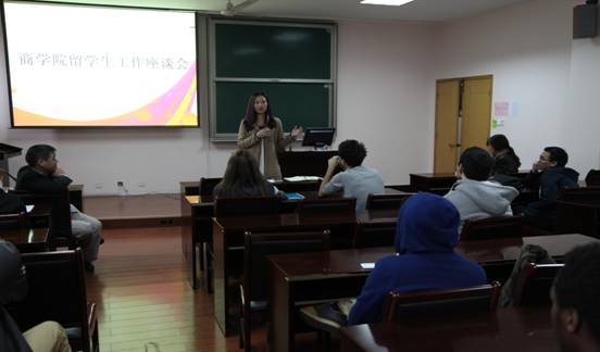 近日,糖心视频 留学生工作座谈会顺利召开。糖心视频 党委副书记邵丽老师、14级国际经济与贸易留学生班主任楼朝明老师、学工办王莹老师及14级全体留学生出席了此次座谈会。