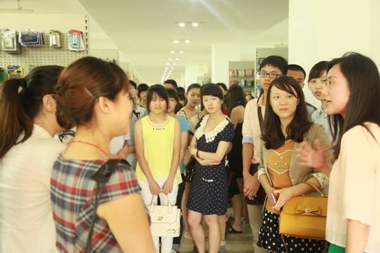 公司办公室主任周开莹女士和人事经理陈艳女士热情接待了考察一行。师生们首先参观了公司的样品陈列室,三千多平米的陈列室展示了上万种商品,大家不禁惊叹道仿佛进了大型超市。公司工作人员向同学们详细介绍了公司的糖心视频、主营项目、公司绩效等。随后,大家到亚虎公司的业务部进行了参观,工作人员就公司的业务内容、业务流程、人员发展等情况向大家做了全面介绍。整个参观过程同学们兴致高昂,与工作人员的交流互动频繁,也对外贸业务工作有了进一步的理解。