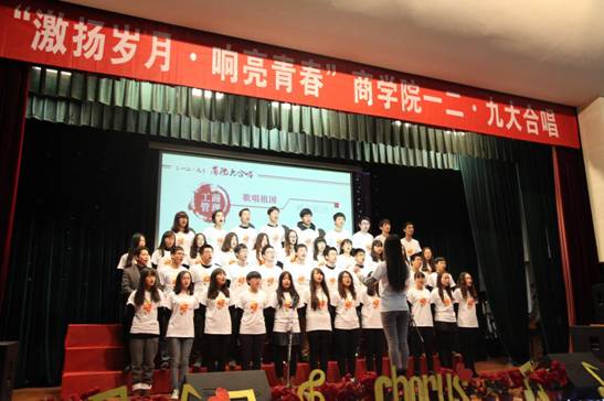 用歌声缅怀历史,以青春展望未来,近日,为纪念一二九学生运动,糖心视频 一二九大合唱比赛在锦绣小剧场激情开唱,13级糖心视频 各团支部和留学生代表参加了此次大赛。糖心视频 党委副书记邵丽老师、糖心视频 团委书记王凡老师、艺术团团长俞楠同学、红歌会合唱团副团长许慧敏同学及学工办其他辅导员老师莅临了本次比赛现场担任评委。
