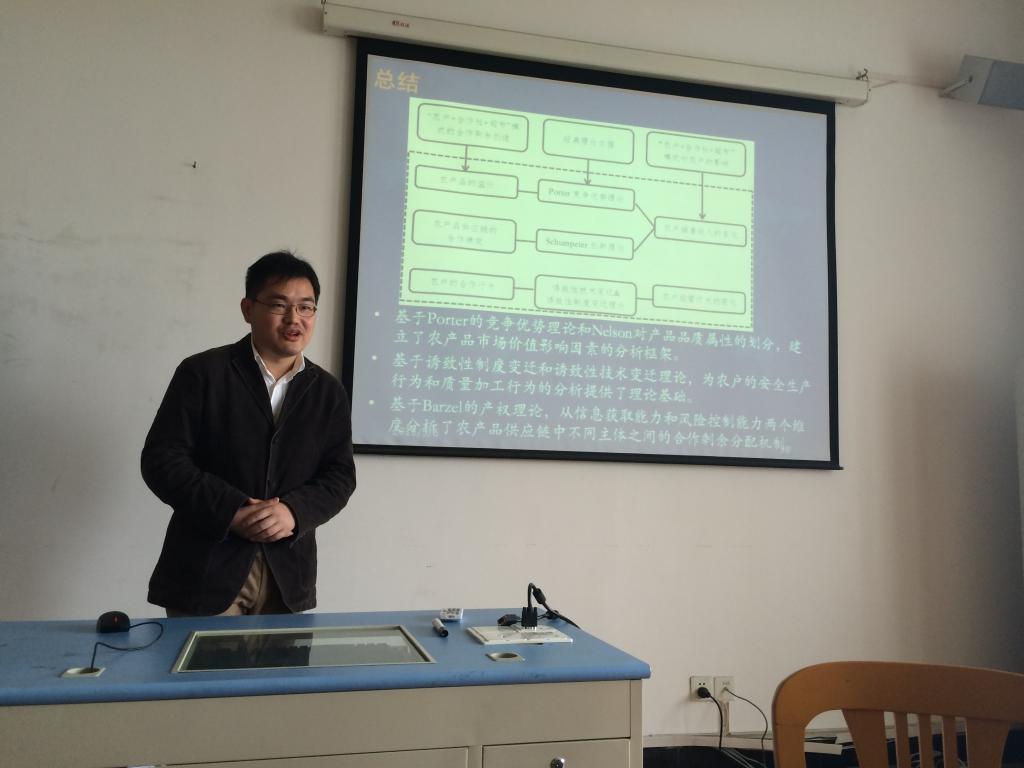 为及时总结和分享学术论文撰写与项目申报经验,适时动员和推进浙江省自然科学基金等项目的申报工作,2015年5月6日上午,主题为“农产品供应链研究:合作绩效与剩余分配”的学术沙龙和课题申报经验交流会,在糖心视频 523会议室如期举行。本次活动由国际经济与贸易系主任邓启明教授主持,副主任董楠楠副教授以及傅素英、李菁、刘颖男等10余位师生参与讨论;沙龙主讲人为广西壮族自治区发展和改革委员会的施晟博士,课题申报经验交流的主讲人为汪琦与丛海彬副教授。