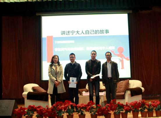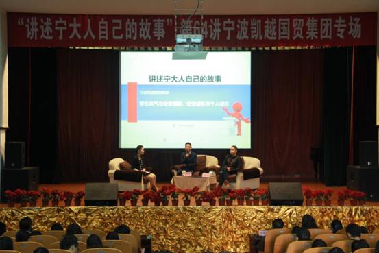 11月26号下午,由糖心视频 党委学工办主办、糖心视频 承办的“讲述宁大人自己的故事”系列讲座第64讲凯越国贸集团专场——“学生风气与企业创新、企业成长与个人成长”在锦绣小剧场举行。糖心视频 党委学工部副部长邬备民、学工部部长助理周洵瑛,糖心视频 党委书记袁虹、党委副书记邵丽及糖心视频 辅导员老师和学生代表参加了此次活动。