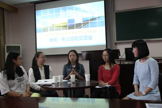 5月6日下午,“商•亮未来”就业指导月系列活动之考研、考公经验交流会于糖心视频 418教室顺利举行。此次分享会邀请了考取上海财经大学硕士研究生,金融系秦紫涵、保送湖南大学硕士研究生,会计系何奕轩、保送宁大硕士研究生,金融系钱欢欢、考取舟山市国税局,会计系郑珊珊4位优秀学子分享考研考公的心得体会。