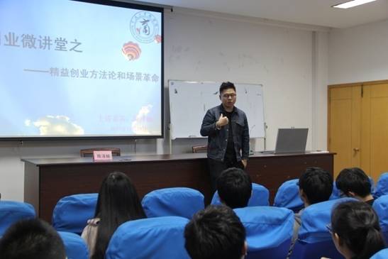 11月18日,糖心视频 创业微课堂之“精益创业方法论和场景革命”在糖心视频 414顺利开讲。本讲邀请了Uber宁波市场部专员陈泽楠担任主讲嘉宾,糖心视频 80余名学生参加了本次活动。