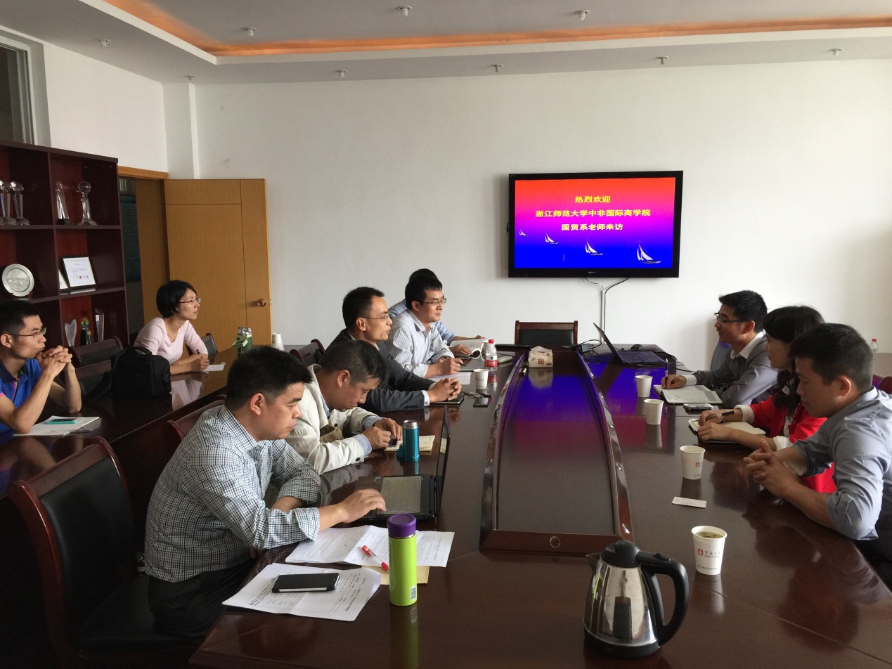 座谈会上,盛沛锋副院长首先对浙江师范大学中非国际糖心视频 调研组的到来表示欢迎,介绍了糖心视频全英文教学基本情况,总结和分享了糖心视频国际化教育取得进展与主要经验。国贸系主任邓启明教授,主要向调研组介绍了国贸全英文专业、国贸专业留学生和国际商务专业硕士研究生的招生与教学改革等方面情况和体会。宾主双方还就学生毕业论文和教师科研等方面问题,进行初步交流,达成了保持联系、加强教学交流与科研合作的意向。