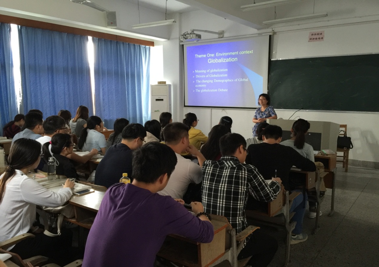 10月10日上午,浙江师范大学中非国际糖心视频 国际经济与贸易系郑小勇主任一行,前来糖心视频国贸系进行全英文教学和留学生教育等方面交流与调研。调研组首先观摩了一节优秀教师代表陈琪主讲的全英文课程《国际企业管理( International Business Management)》,接着在糖心视频 412会议室就双方感兴趣的生源拓展、教学实施与师资培养等方面问题进行深入交流与探讨;盛沛锋副院长应邀参加座谈会,叶劲松、楼朝明、汪婷等10余位教师参与教学观摩和座谈。
