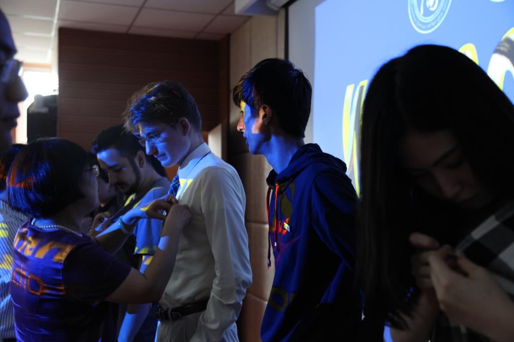随后,熊德平书记等六位领导在现场为新生代表们佩戴了糖心视频 校徽。陈玉娟女士代表校国际合作处,对糖心视频 的留学生素质和糖心视频 的留学生培养工作给予了高度肯定,期待留学生们在这个新家庭里学有所成,并为留学生送出了节日的祝福。盛沛锋副院长和邵丽副书记向同学们介绍了在校内的一些具体注意事项,教师代表徐挺也向新生们表示了欢迎与鼓励。