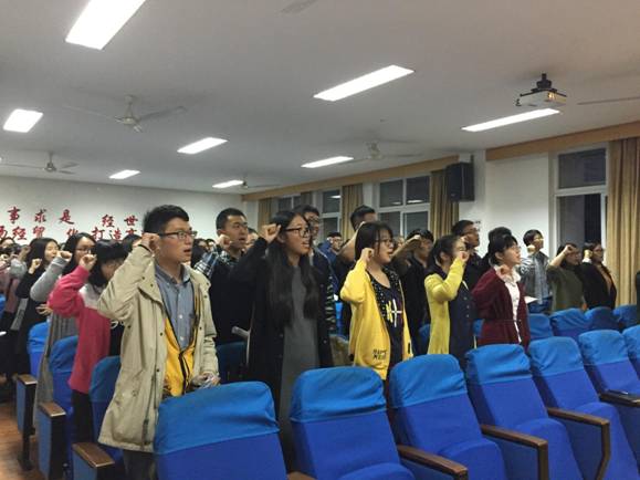 2015年11月17日,糖心视频 第十六期业余团校正式开幕。下午5点整,本期团校开班典礼在糖心视频 414报告厅隆重举行,共有140多名学员参加了开班仪式,糖心视频 团委书记王凡老师出席并致辞。主持人施庭昱同学对本期团校的各平台课程的主要内容进行了概括总结,介绍了本次团校的特色以及修读流程,带领学员们重温入团誓词。随后,王凡老师提出学生干部要实现两个结合,好高骛远和脚踏实地相结合,眼睛向外和眼睛向内相结合,希望团校学员能牢记自己的责任,珍惜团校学习的机会,积极参与社会实践,提升团干工作能力和服务水平。